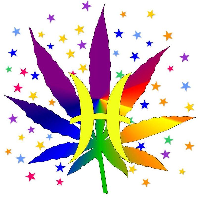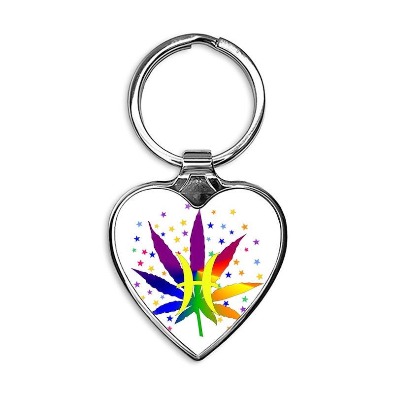 Rainbow Marijuana Pisces Heart Keychain
