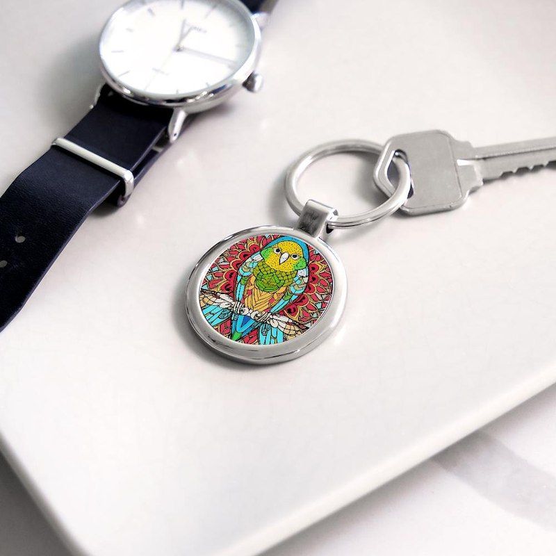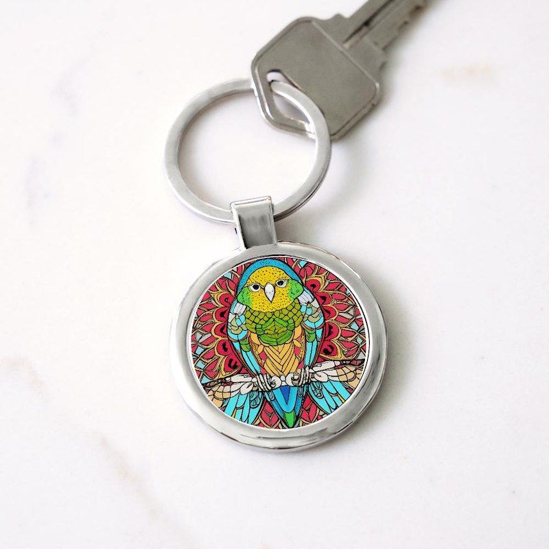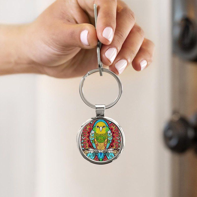 Cute Budgie Parakeet Circle Keychain