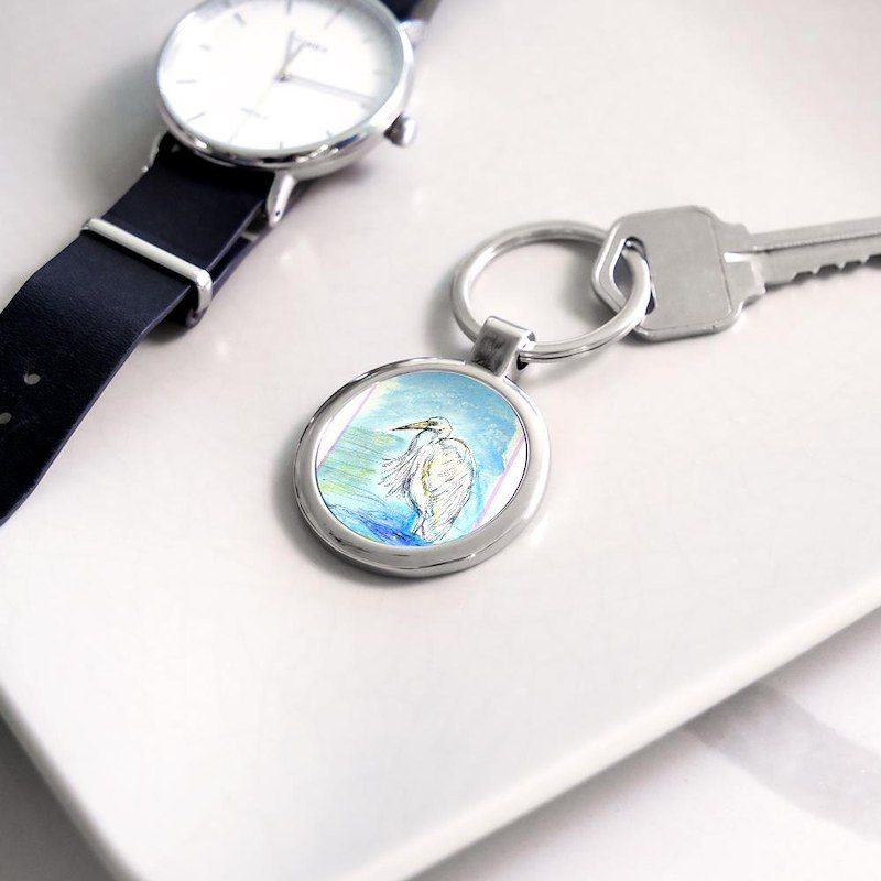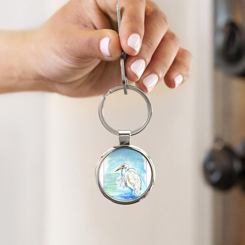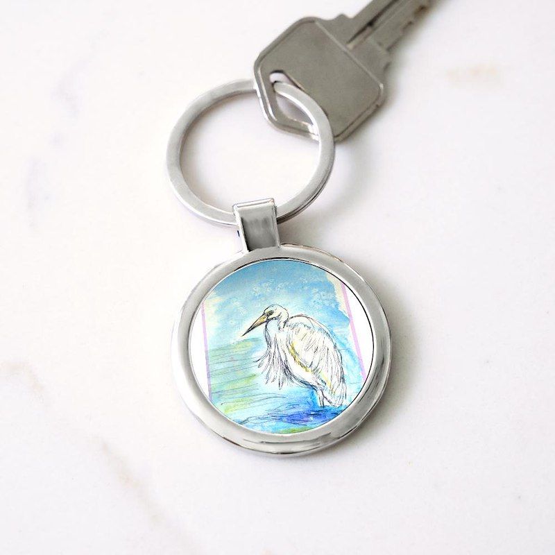 Egret! Wildlife art! Circle Keychain
