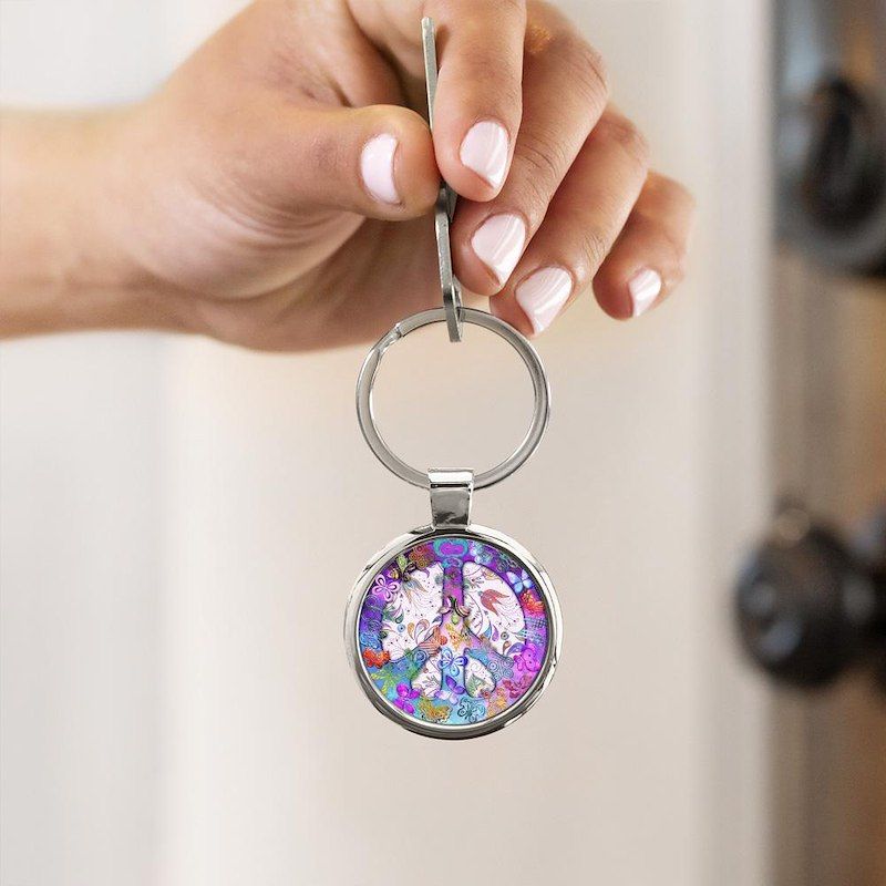 Harvest Moons Butterfly Peace Sign Circle Keychain