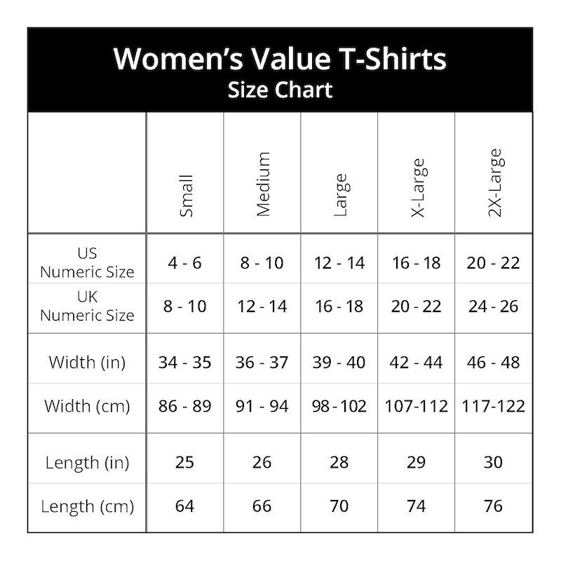 Our Women’s Value T-Shirt is an everyday essential! Our short-sleeve, heavyweight T-shirt is comfortable, economical and flattering. Designed with a traditional fit that runs true to size, she’ll show off her personality, humor and passions with an easy, relaxed style. Comfortable, heavyweight Women’s Value T-Shirt made of 100% preshrunk cotton; gray colors are made of a cotton/polyester blend